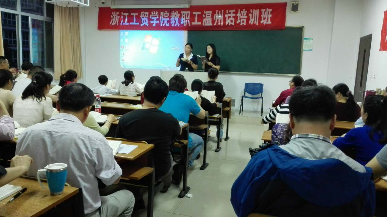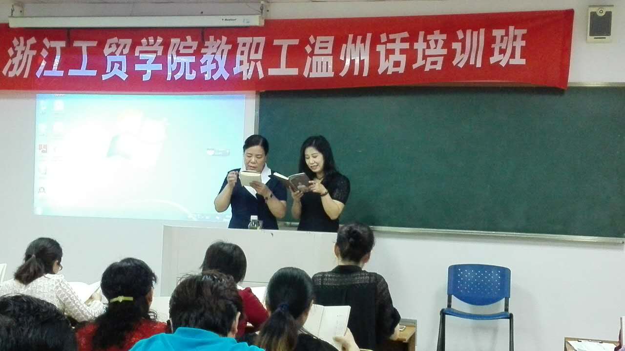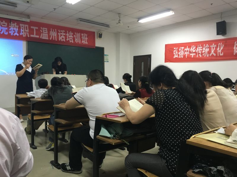 5月5日晚6:30,我院教职工温州培训班正式开班。本期培训班旨在帮助非温州籍老师学说温州话,从而更好地融入到温州当地的生活中,减少因不懂温州话而带来的种种不便。学院工会诚聘温州电视台“社区闲事婆”张小燕担任培训班授课老师,共有40多名教职工报名参加。课上,张老师认真负责且幽默风趣,老师们学习热情高涨,课堂上气氛活跃、互动频繁。一个半小时的课程不知不觉就结束了,大家仍意犹未尽。相信本期温州话培训班一定会让老师们都有所收获。