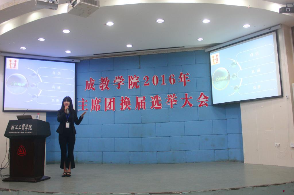 2016年5月12日晚,成教学院团委学生会主席团换届选举大会在阶梯教室顺利展开。出席本次大会的有成教学院学生管理部的三位老师及各院系团委学生会负责人,成教学院部分学生参加了此次选举大会。
