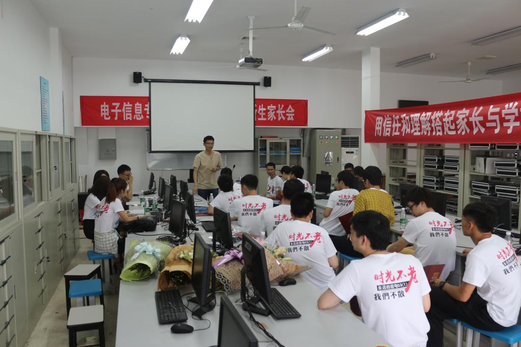 在胡碧碧、叶晶晶、李永茂等同学的筹备下,电信03(1)班毕业十周年同学会如期在9206教室召开。同学们分别十年再次相见,显得格外亲切,互诉近况,喜笑打骂,无拘无束。首先,原辅导员吴老师给同学们准备了精美的小礼品,通过有奖竞猜、抢答的方式,大家了解了母校十年来的发展变化和所取得的优异成绩。同学们也回忆了那曾经的校园生活,还记得班级里勤勤恳恳的班委吗?还记得悉心指导的任课老师吗?班主任华老师也一一点名并再次谆谆叮咛。同学们逐一上前介绍了自己十年来的成长历程,分享了人生的体悟,并回顾了自己在校期间的小故事。