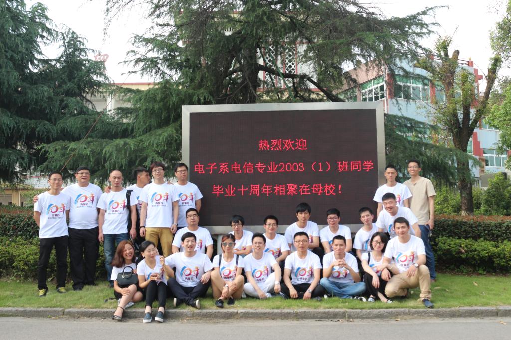 时光飞逝,岁月如梭,转眼已毕业十年,他们已成家立业。为了找寻封存在心灵深处美好的记忆,为了再次感受美好的校园生活,重拾纯真的友谊,2016年5月14日上午,电子系电信03(1)班同学在毕业十周年后,再次相聚在母校,回首不散场的青春。