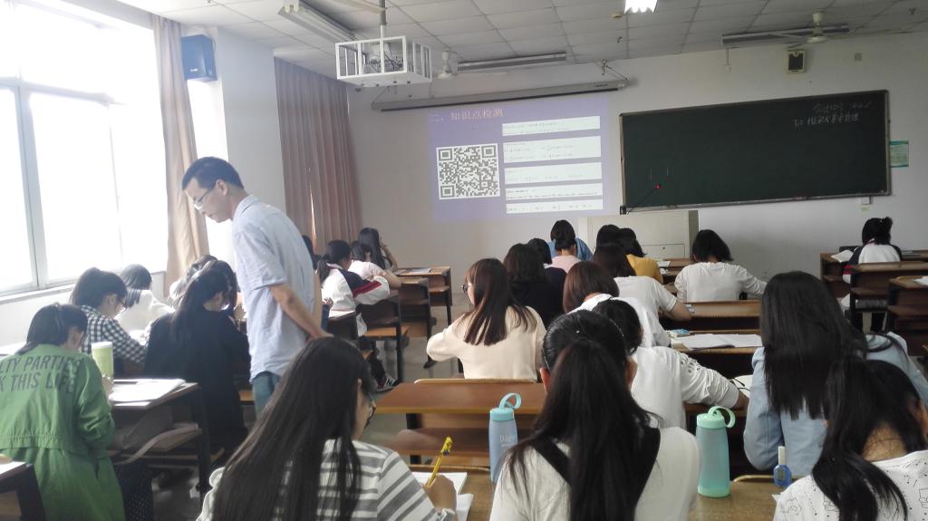 这是数学专业主任毛海舟老师的一堂专业主任示范课,共有20名学术委员和教师进行了现场观摩与学习。在本次课堂教学中,毛海舟老师展示了他的两项课堂教学创新“力作”:课堂教学实时反馈系统和课堂教学随机抽查系统。课堂教学实时反馈系统,通过学生使用手机扫描二维码做题,能够及时搜集和掌握学生对数学知识点的掌握情况、学生参与作答情况、正确率情况等,在此基础上进行随堂测试的评价和点评就具有更强的针对性。课堂教学随机抽查系统的使用,减少了老师教学效果抽查的人为性,增加了不确定性,课堂学习效果通过软件直观展现,调动学生必须要努力跟上老师的节奏,主动积极性得到了增强。这两项课堂教学管理技术系统的应用,充分利用现代新媒体技术,特别是手机辅助教学,较好地调动了学生的主动性和积极性,效果良好。