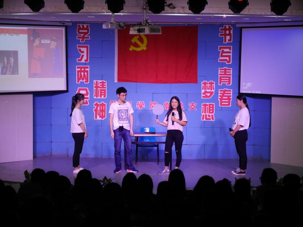 2016年5月30日晚6:30,由管理学院党总支主办的“学习两会精神,书写青春梦想”活动在阶梯教室隆重举行。分院第一学生支部书记陈君老师、辅导员陈力特老师、党员代表叶迪尔、陈明铭以及各班入党积极分子、建党对象参加此次活动。