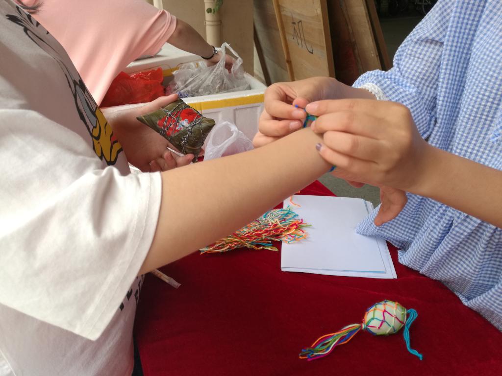 活动为大家开展了有关于端午节知识的小竞赛,答对了就可以领取可口的粽子和咸鸭蛋。,使得活动气氛更为浓烈。为了能够让同学们感受到节日的氛围,活动还邀请了轻工系辅导员老师陈剑老师为同学们点雄黄酒、系手绳,向同学们致以节日真诚的祝福。