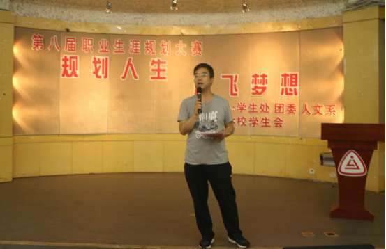 6月7日晚,学院第八届大学生职业生涯规划大赛决赛在多功能厅举行。大赛邀请了学生处处长林海春老师、区域文化中心主任王小明老师、创业学院院长台新民老师、管理学院孙仁峰老师以及人文系高富春老师担任评委。