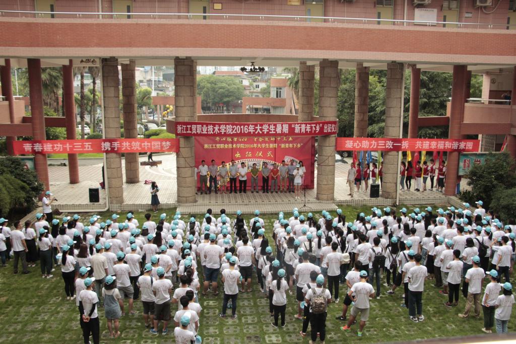 7月1号上午,以“齐心服务G20 青春建功十三五”为主题的大学生暑期“新青年下乡”出征仪式在1号楼广场举行。