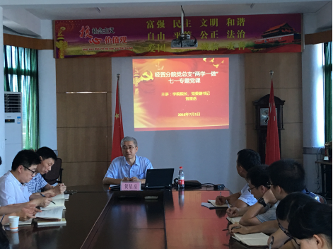 2016年7月1日,是中国共产党建党95周年的纪念日。下午2点,学院院长、党委副书记贺星岳在一号教学楼六楼会议室讲授了以“坚定理想信念,明确政治方向”为主题的专题党课。党课由经贸学院党总支书记项光春主持,经贸学院党总支全体教职工党员参加党课。