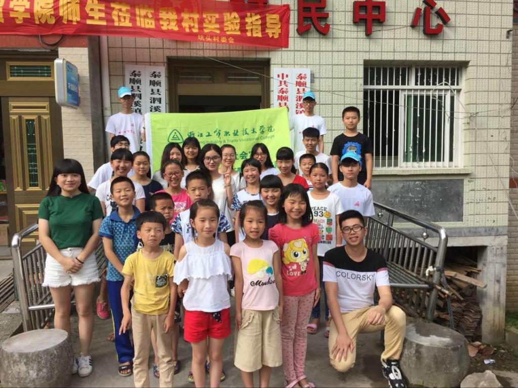 此时的天空的格外的蓝,在这绿树环绕的泰顺小乡村里,多了12个陌生的身影。他们满怀激情的来到了这里,感受这从来没有过的暑期社会体验。从7月1号一大早,赶完出征仪式,12个人就兴致昂扬的踏上了前往泰顺的征程,他们的故事将从这里开始,他们将用他们的耐心和笑容给那里的小朋友们带去快乐!
