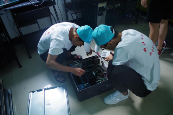 早上,志愿者队伍的负责人与街道办事处中心负责人对接了暑期实践的相关事项,并进行了暑期实践活动的启动仪式。在开幕式上,吴主任对前来的志愿者给予赞扬,并鼓励社区孩子们向志愿者学习,成为一个有责任感的人。接下来,志愿者们对社区的电脑进行了维修工作。在维修工作中,志愿者们对每一台电脑都进行组装,插线等任务,细致地检查着每一个可能存在的问题,并对产生问题的电脑进行维修。当遇到有些棘手的问题时,大家就齐心协力,聚在一起讨论,每个人都提出自己的想法,在一一排查之后,困难就迎刃而解了。同时志愿者们还积极地对一些废弃的电脑进行查看、维修,尽自己的微薄之力为社区居民贡献自己的力量。