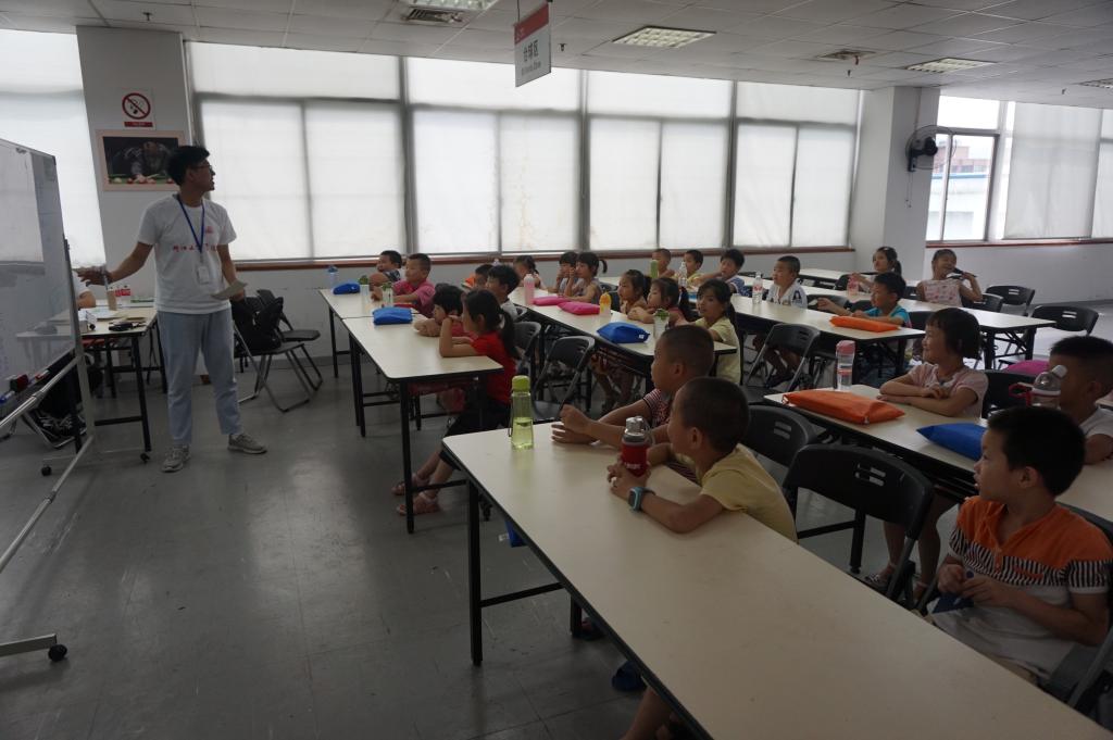 七月的柳市,艳阳高照,七月的德力西,充满书香气息,朗朗的读书声弥漫在德力西工业园区,楼下行走匆匆的上班工人,都忍不住停下脚步。今天是浙工贸小候鸟暑期班开班的第二天,队员们褪去了昨日的茫然与陌生,熟悉了场地,熟悉了孩子。渐渐的,每一个队员都能够把自己班级里的学生名字叫出来。