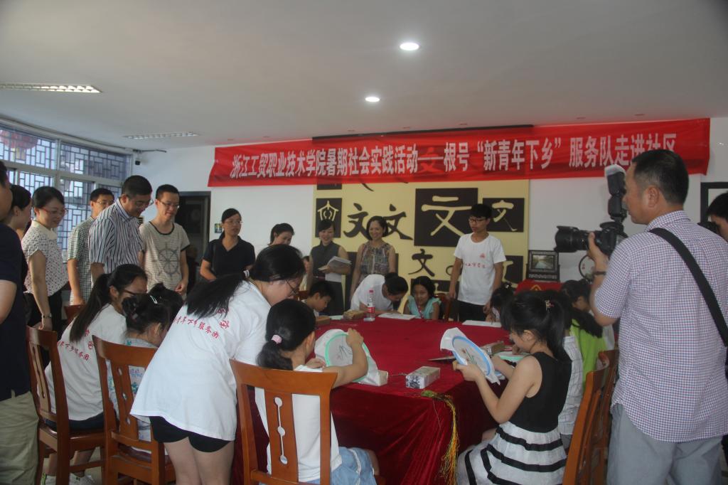 在服务队活动现场,我院瓯绣文化传承“新青年下乡”服务队的同学正在教当地小朋友瓯绣传统技艺,胡副部长高度认可我院在温州地方非遗文化传承方面做出的贡献,他认为在暑期“新青年下乡”服务中开展瓯绣文化传承实践活动,既可以让更多的人认识非遗,传播非遗,同时在穿针引线之间还可以锻炼小朋友的意志品格。在二楼,我院根号“新青年下乡”服务队的10名队员给现场30多名小朋友带去了折纸艺术、汉字拼写、趣味体育等课程,受到了当地小朋友的欢迎。走访期间,胡副部长详细询问了我院今年暑期“新青年下乡”服务队队员所学专业、活动时间、活动内容等情况,胡副部长对我院“新青年下乡”活动印象深刻,认为我院活动紧密围绕市委市政府工作部署和要求,紧密结合地方老百姓生产生活需求,活动特色明显,成效显著。