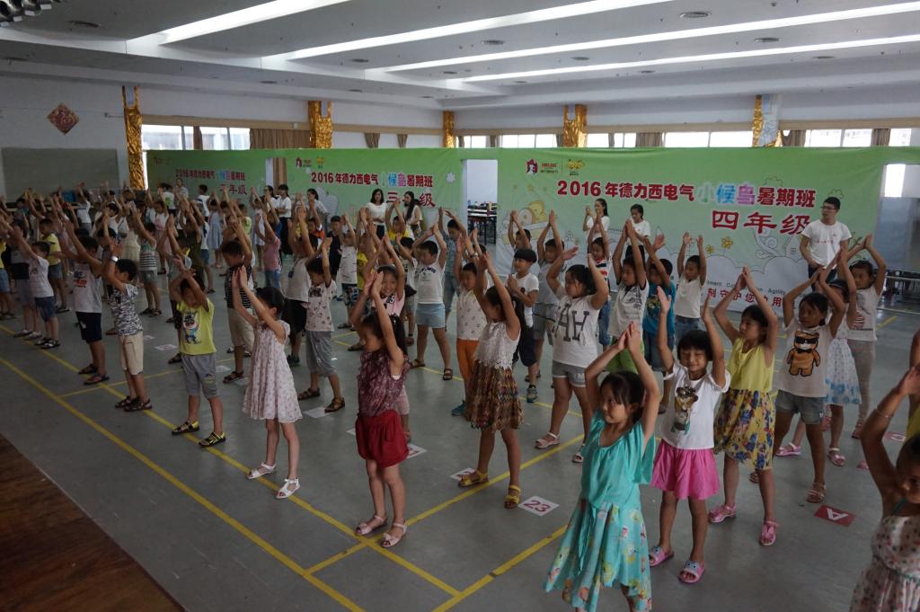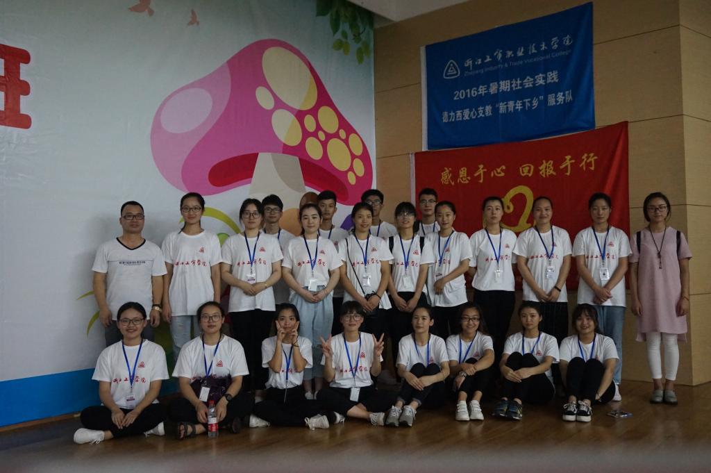 跟往年一样,每到7月初,浙江工贸学院德力西爱心支教队伍一定会如约奔赴支教基地。2016年7月10日,德力西爱心支教“新青年下乡”服务队在管理分院张勰老师带领下以“感恩于心,回报于行;助力G20,携手护春泥”为口号,以给孩子们一个快乐暑假为目的,来到德力西集团公司,开始为期四十天的暑期爱心支教活动。