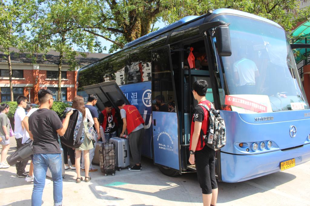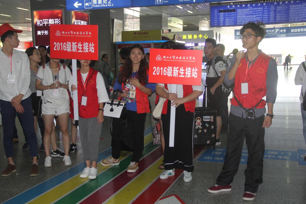 为保证校园舒适环境和人流通畅,今年学院新生报到点设在学院操场,学院简化新生报到程序,每个新生不到5分钟就完成了报到注册。新生班主任、辅导员坐镇报名点,亲情接待,悉心指导新生报名、学业困惑、生活问题等等。与此同时,在温州动车站、温州火车站、温州客运中心等6个客运站点,还活跃着一批学生志愿者,新同学一下车就可以看到印着学院字样的接站举牌,还有洋溢着热情笑容的红马甲志愿者。学院今年安排了12辆站点接站车,从9月18日清晨就投入新生接站工作。为方便新生报到,学院还安排了多个行李寄存处、迎新咨询点、家长休息区、缴费注册处和学生宿舍服务站等,还在新生校园一卡通内贴心地预先存缴了100元钱,方便新生们的使用。