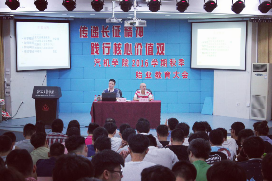 针对在校的高年级学生,汽机学院召开的始业教育大会上,由院长助理郑道友老师给同学们介绍了上一学年汽车与机械工程学院教务研究的成果,并对上一学期同学们的期末考试概况进行分析,讲述了新学期的教学课程安排,让同学们对于未来的教学进程以及要求有了大致的认识。书记冯士活老师则针对高年级学生的就业问题,开展了职业生涯规划的讲座,将求职就业的信息和注意事项跟同学们一一分享;冯书记还结合社会主义核心价值观的思想内容,将培养良好职业道德的求职要求跟同学们着重讲解,让高年级学生受益匪浅。