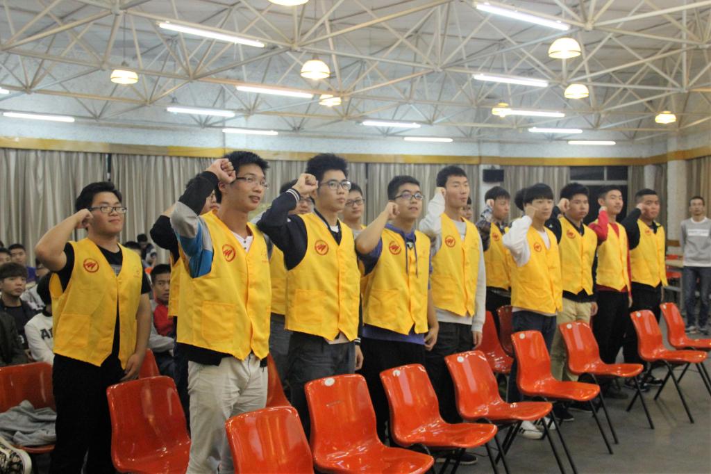 主持人以幽默又不失风雅的话语让同学们的欢笑声充斥在整个大厅,其中有昂扬、动听的歌曲,又有庄重神圣的宣誓。