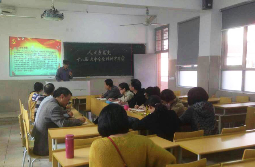 11月4日下午,人文系党总支召开“两学一做”学习教育之党的十八届六中全会精神学习会。系总支副书记徐辉主持并作专题发言,系党总支书记尹清杰、教工支部书记程振设及教工支部、学生支部的全体在校党员参加,并吸收部分学生建党对象参加了学习活动。