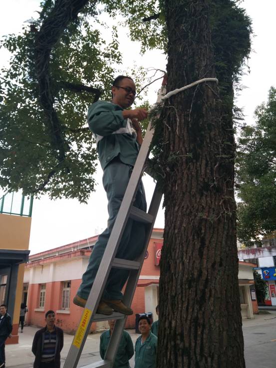 6、开展一次安全生产演练。总务处将培训课堂安排到室外,讲解安全带、安全绳如何穿戴、如何使用,什么情况必须使用等问题。现场每个员工分别穿戴安全带、安全绳、现场演练高空作业,爬上屋顶,开展屋顶清理,使用梯子、安全绳进行现场安全示范作业。章纪顺处长现场指导,并详细讲解作业过程中要注意的安全点。通过理论和实操的培训,员工纷纷表示此次培训受益匪浅,今后要注意安全预防,安全作业。