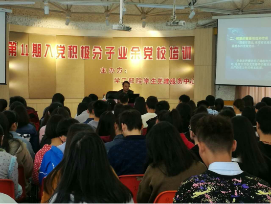 11月5日,学生党总支在学院多功能厅举行第十一期二级业余党校培训班,本次培训班由学工部学生党建服务中心承办,共有170余名学员参加了学习。