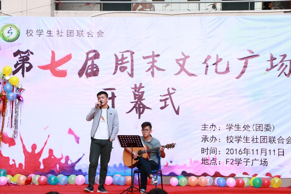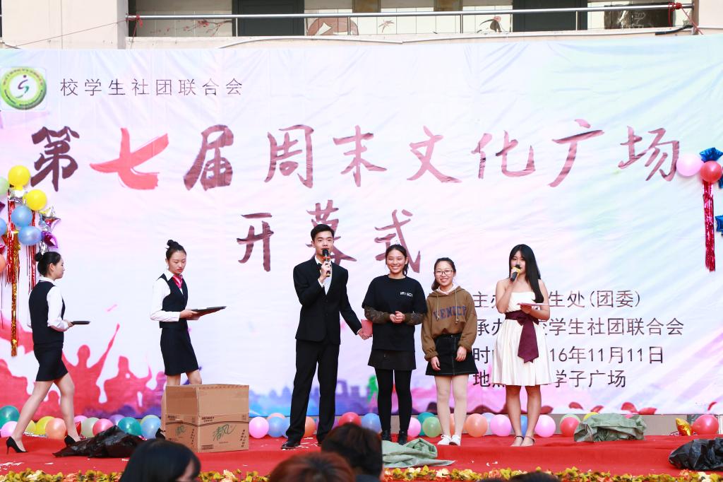 2016年11月11日下午,由学生处(团委)主办,校学生社团联合会承办的第七届周末文化广场开幕式在学子广场拉开了帷幕。开幕式采用文艺表演的形式,开展期间,各社团精心筹划、积极参加。