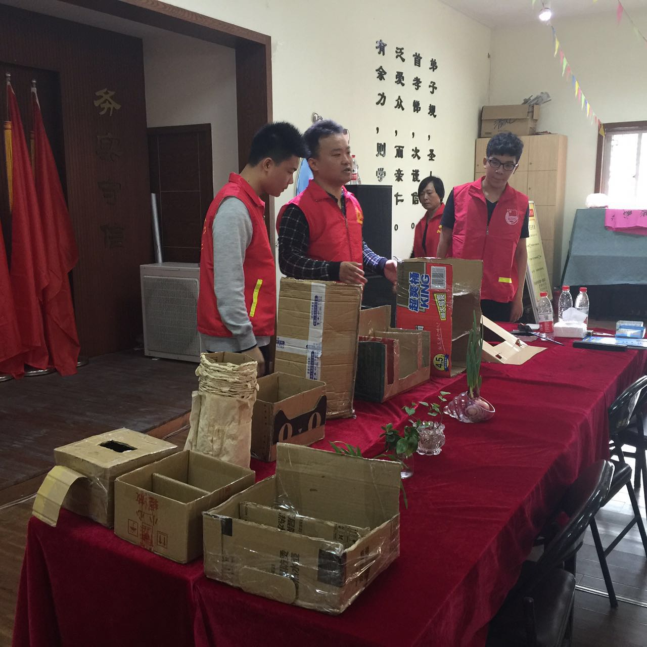 2016年11月21日上午,我院金色原野“新青年下乡”服务队前往芳园社区共同开展“勤俭节约”活动,下午,以“勤俭节约”为主题用双11过后人们丢弃的纸盒,制作了一系列以实用、环保、节俭为目的生活用品。