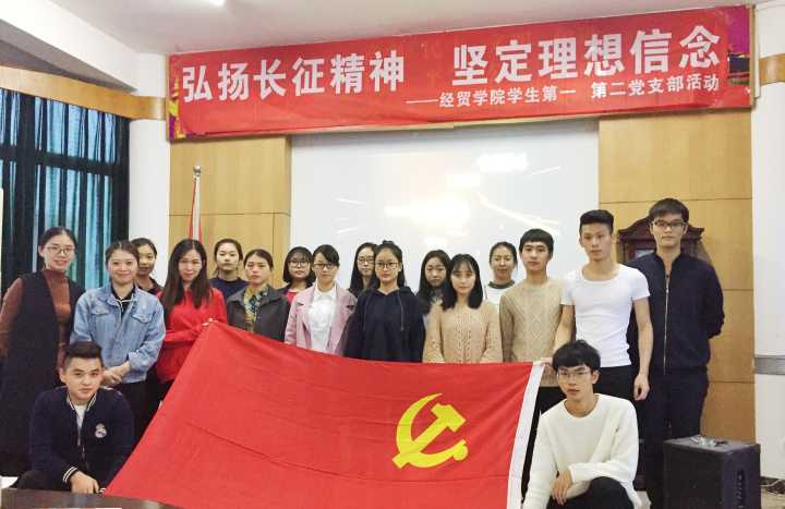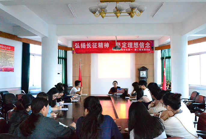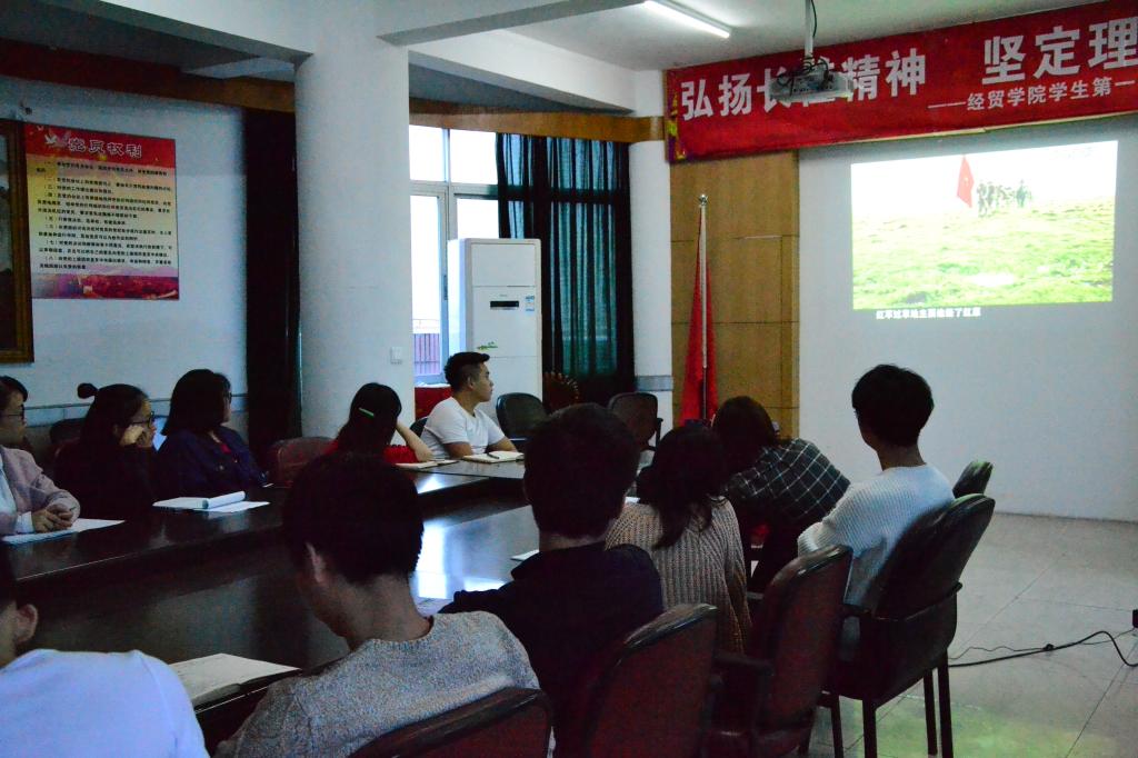 为纪念红军长征胜利80周年,积极引导学生党员弘扬长征精神,坚定理想信念,11月22日下午,经贸学院学生第一、第二党支部在1号楼六楼会议室举行系列学生党员活动,在校学生党员和发展对象全部参加。