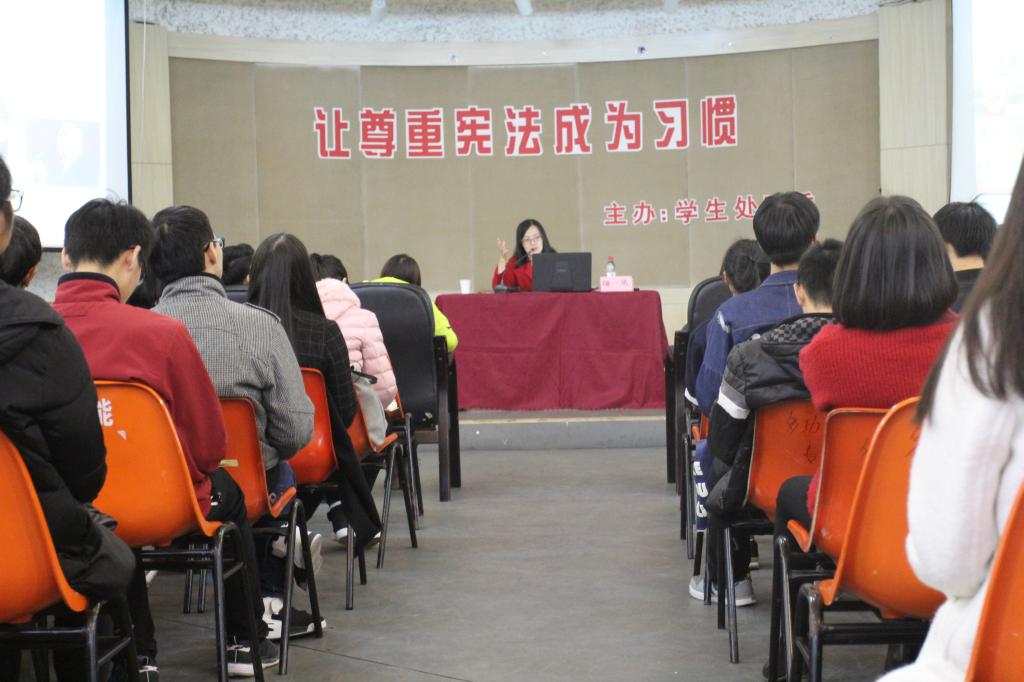 宪法是法的组成部分,它集中反映各种政治力量的实际对比关系,为了使在校大学生更加了解宪法,利用宪法,保护宪法,2016年12月6日晚上,在多功能厅举办了2016年秋季学期第二期团学干部培训活动。讲座由温州大学法政学院教授,法学博士项一丛主讲。