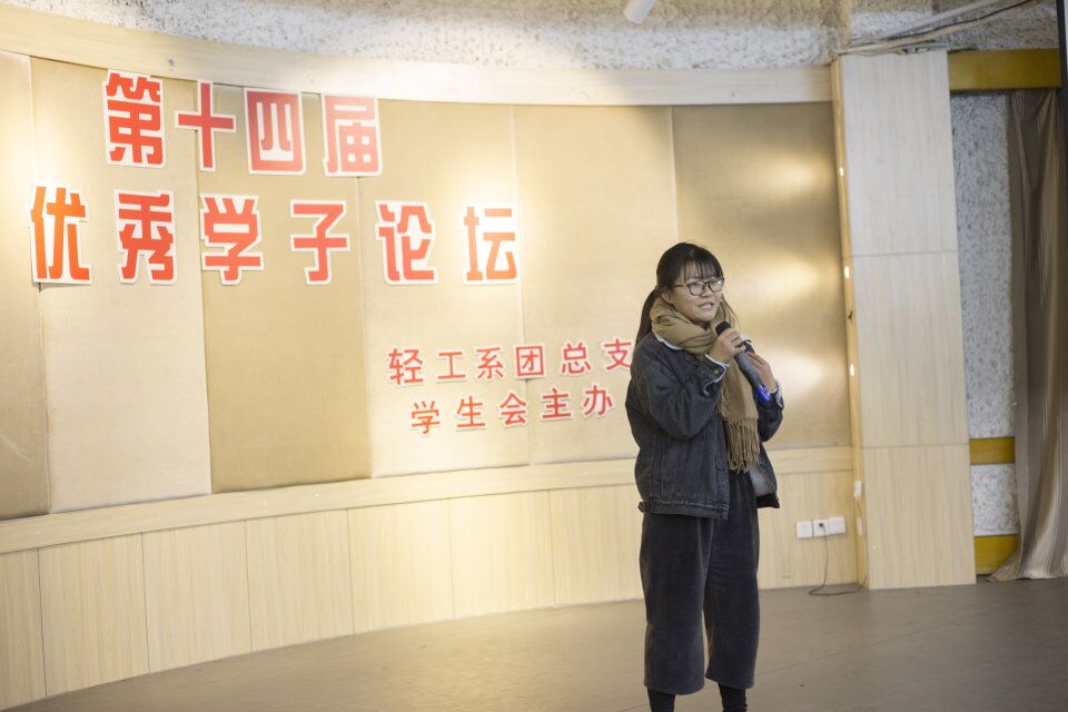 首先,由轻工系辅导员张婷老师上台为优秀学子论坛致词,她指出,同学们来到大学以后要尽早做好生涯规划,今天的论坛不仅要带着耳朵来更要带着思考回去,从优秀的学长学姐身上取经。最后她对同学们的未来表示了期待与祝福。