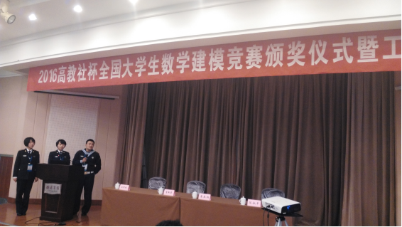 2016年全国大学生数学建模竞赛的颁奖会于12月3日在东南大学举行,获得“高教社杯”和“MATLAB创新奖”的4个队展示了他们的作品,并与现场的学生和老师们进行了互动交流。应全国组委会的邀请,我院王积建老师参加了颁奖会,并对竞赛作品做了精彩而中肯的点评。