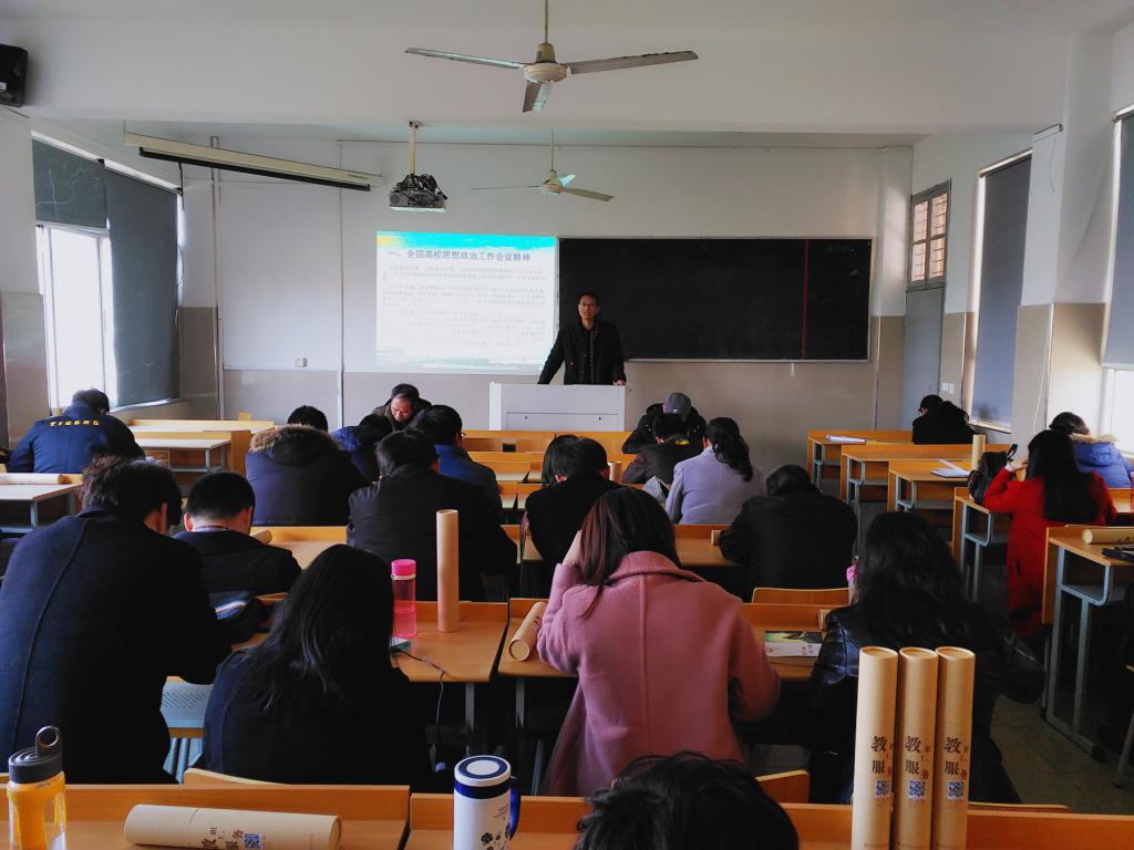 吴书记首先谈到国家主席习近平出席高校思想政治工作会议,这是建国以来,党的总书记第一次参加全国高校思想政治工作会议并讲话,可以看出我们党和国家对高校思想政治工作的重视提到了前所未有的高度。其次,书记介绍了高校思政工作会议的主要精神,例如将立德树人作为中心环节,把思政工作贯穿教育教学过程;使得思政工作围绕学生、关照学生、服务学生,不断提高学生的思想水平、政治觉悟和道德品质等;此外还需要继续加强辅导员、班主任和教师党员等队伍建设。最后,吴书记对教师党员们提出希望,要重视并投身思想政治工作,做好对入党学生的思想和引导教育、做好教育教学的本职工作、关注学风建设和特殊生工作、在毕业生跟踪调查中发挥作用。同时,吴书记也希望教师党员们应发挥自身优势,带领学生们主动学习并参加挑战杯、职业生涯规划大赛和“互联网+”大赛,发挥党员的带头作用,体现党员的先进性。