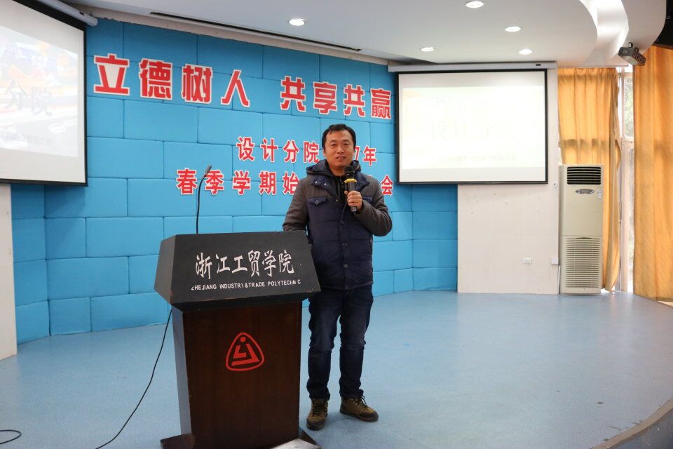 设计分院辅导员陈剑老师从学生管理和思政工作方面对同学们作了总体要求。他回顾了上学期在校生以及毕业生所获得荣誉,通报了上学期学风及寝室状况。最后,陈老师对设计分院学风及寝室文明建设具体要求提出说明,并提醒同学们遵守学校规章制度以及注意交通、饮食、卫生等各方面安全。