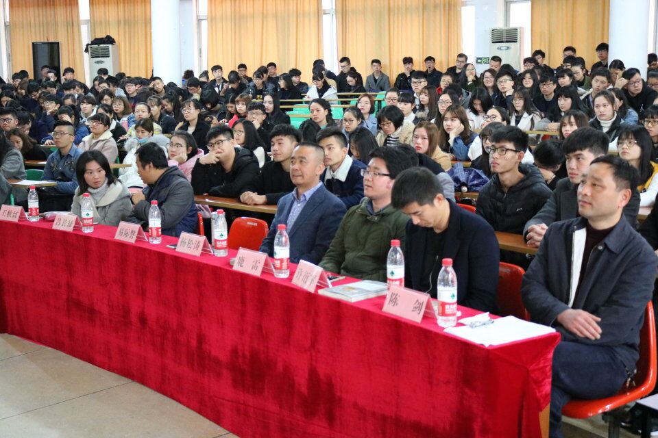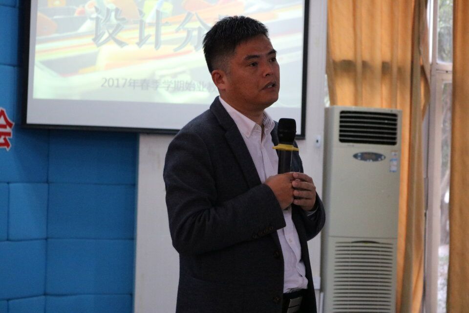最后,设计分院书记杨松涛作总结致词。对于2017年设计分院的正式成立,杨老师有着诚挚的祝福,他希望全体师生能够秉承先进集体的理念,加强设计分院的礼文建设,做到“立于礼,游于艺”,将设计分院办得越来越好。他结合“闻鸡起舞”、“山鸡舞镜”两大成语典故,指出任何时候勤奋努力都为时不晚,同学们不要在网络世界中麻痹内心,要多走出寝室与人交流、多走向运动场增强体魄。杨老师还提出四个回归:“回归读书、回归梦想、回归本分、回归初心”,读书是为了某一个时段遇到更好的自己,同学们除了专业书还要多读人文类、社科类各类优秀书籍。杨老师告诫同学们要有好的身体,勤奋是通向理想的阶梯,做人是成功的基础,不忘初衷,方得始终。最后,他告诉同学们一大喜讯:设计分院在2016年度被评为“先进集体”,这是全分院师生共同努力的结果。2017年需要师生齐心继续努力,不虚度、不退步,一起创造设计分院更好的成绩。