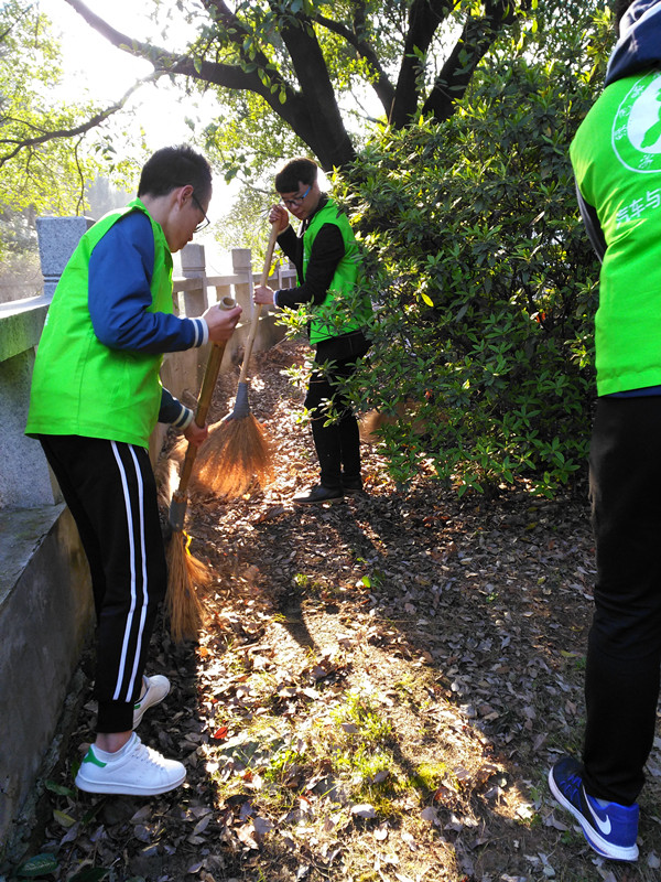 志愿者们按照自己所分到的区域,首先将地上的落叶清扫干净,然后又把掉落在草丛里的树枝、石头、烟头、塑料碎片等垃圾捡起来扔进整理袋;对于长满杂草的地方,志愿者们齐心协力将杂草一根一根处理干净。大家充分发挥不怕脏、不怕累的精神,干得热火朝天,来回运送近30多大袋的垃圾。