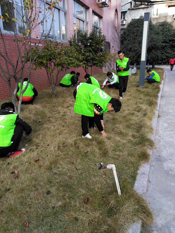 本次参加活动的志愿者有入党积极分子也有志愿队的成员们,共计70余人。志愿者一共分为5队,由总务处花圃园艺工人带队,分别负责学校的不同区域绿化区域。本次活动的主要内容是清理草坪杂草、落叶以及烟头塑料等日常草坪清扫难以打理的垃圾。