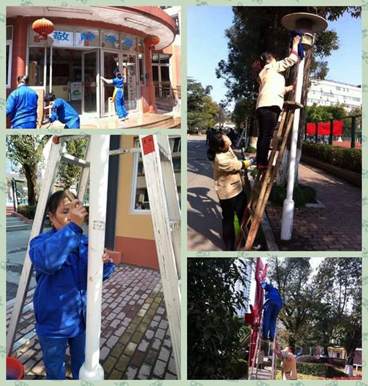 “牵牛要牵牛鼻子”。环境卫生的关键点在死角,在盲点,治理好了死角盲点,校园环境卫生整治工作就成功了多半。总务处组织全体后勤服务中心人员开展校园卫生死角盲点大清理活动,开展楼屋顶管道、干树叶,校园路灯设施清洁、广告纸祛除等清理活动。并协同汽机分院绿色啄木鸟志愿服务队开展了“行动,永恒的美;校园,温暖的家”学校绿化带清扫活动。通过集中力量整治祛除卫生死角盲点,校园环境卫生变得更加、整洁有序,优化了整体校园育人环境。