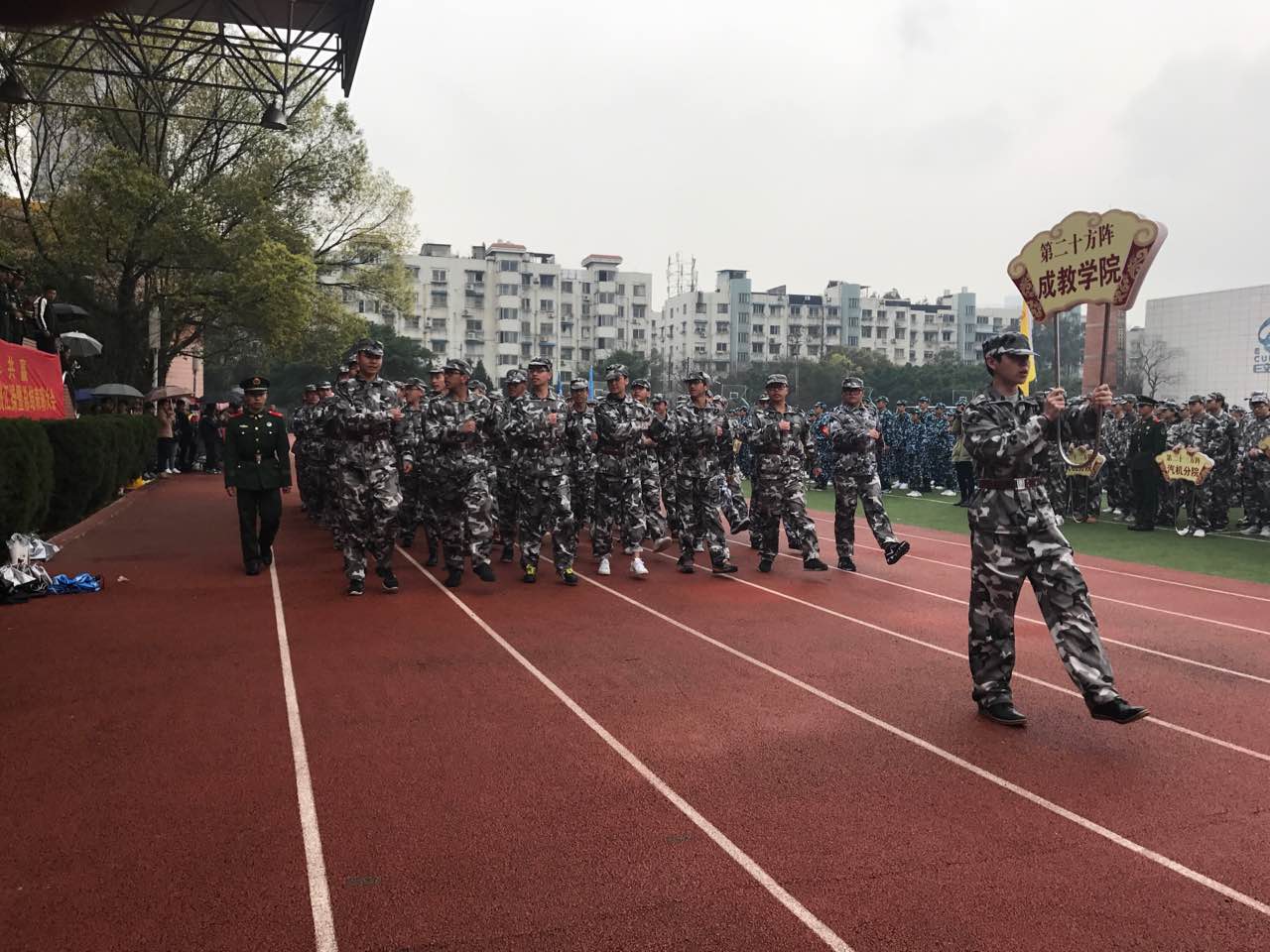 2017年3月6日,成教学院大一新生为期14天的军训正式拉开了序幕,训练的基本内容有队列练习、站姿、蹲姿、坐姿,齐步走和正步走等。军训期间,天空阴雨连绵,但是这并不影响学生们的军训热情,他们搏风抗雨,刻苦训练,用实际行动体现了成教精神——工贸成教、永往直前、顽强拼搏、超越自我。
