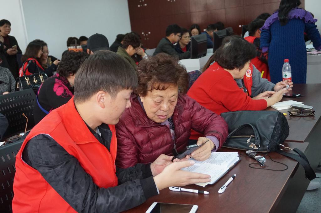 3月15日下午2:00,本学期第一堂微课开班,在分院张勰书记的带领下,经贸分院志愿者一行21位同学来到温州市老年活动中心,近30位老年朋友按照通知时间来到指定教室,志愿者手把手教老人用智能手机,如何发微信、如何把电脑照片传到手机制作电子相册、如何在手机上网购、如何在手机上看视频。老年朋友的热情与认真态度,值得年青人学习。临别时,许多老年人拉着同学们的手说,“你们真好,谢谢你们,在家里孙子总说没时间教我,这样好了,来这里学你们这么耐心,下次把老伴也叫来一起学”。