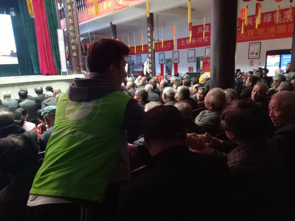 活动期间,志愿者们穿梭在人群中,帮助礼堂负责人为大家分发八宝粥,维持场内秩序。村民们拿着八宝粥的同时还不忘对我们的志愿者说声谢谢。短短几个小时我们感受到了村民们对活动的热情,以及对于宗谱圆谱这件大事的重视。每一次与藤桥镇上埠头对接的下乡活动也使得村民们把我们志愿者当成了自家人,有重大的节日活动都邀请我们参与,还非常热情地招待我们,这也使志愿者们的心里暖暖的。“新青年下乡”活动,让高校大学生们走出校园、深入社会,有了真正贴近生活、了解民俗、在经历中成长的机会。