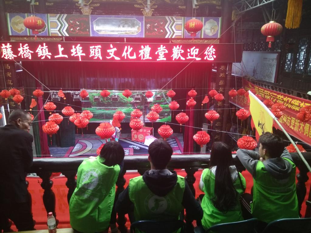 清明节开展祠堂祭祀活动是温州当地的乡土传统,作为外地的学生们借由这次下乡的机会感受到了浓郁地道的温州传统节日风味。天公作美,晴空万里,九名志愿者到达文化礼堂后就参与到活动中去,摆座位,递茶水,与村民们一起看戏,享受着这场视觉与听觉的盛宴,大家伙儿都看的不亦乐乎,掌声阵阵。
