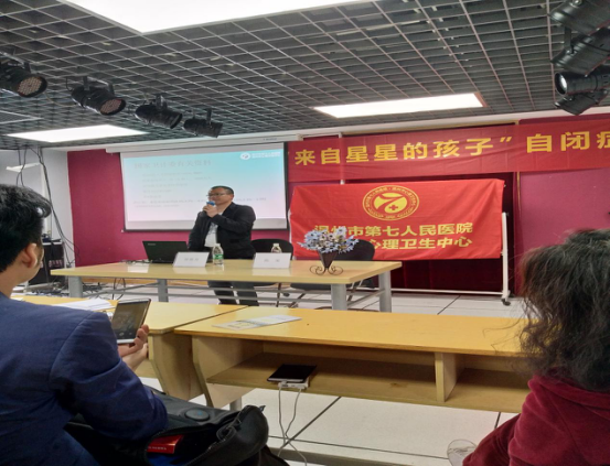 本次讲座邀请温州市第七人民医院副院长郑维芳和医务科科长陈策为主讲嘉宾。首先,郑维芳院长给在场的人员介绍了什么是自闭症,包括自闭症的症状、成因和治疗方法。郑院长谈到自闭症的临床表现为社交障碍、语言发育迟缓、行为刻板等;治疗方法分为药物治疗和情感治疗,特别是需要家庭与社会的关爱,需要家长和其他成员的引导,让患者感受到家庭的温暖。其次,陈策科长以春季是各类心理疾病的高发期为切入点,讲解抑郁情绪的表现、易患人群以及缓解抑郁情绪的方法和心态。最后,郑院长和陈科长就在场人员提出的问题进行解答和阐述。