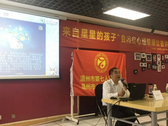 为了进一步促进大学生心理健康工作,帮助大学生了解自闭症和抑郁症,营造学生关注心理健康问题,2016年4月8日下午,汽机分院绿色啄木鸟志愿队联合校外麦乐亲子团队在温州市图书馆六楼沙龙活动厅举办“自闭症心理健康讲座”。