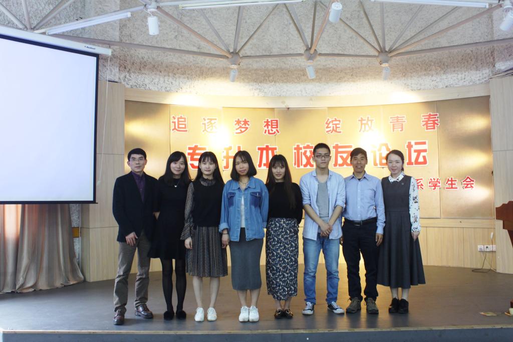 之后是各位校友与在场的同学分享了自己备考经历和心路历程,讲述了对专升本考试的见解。12级朱超超同学发来手机视频,介绍自己参加“专升本”考试,被浙江财经大学录取,并通过自己的不懈努力,考上了研究生的经历。13级的李聪聪同学,在备考的最后45天里,每天起早贪黑泡在图书馆,最终考上浙江财经大学;12级的许颖同学,介绍了她如何从独自一人备考到全寝室投入备考,抱团复习,成效显著,被浙江工商大学录取,现在圆了自己的教师梦;12级的邱楚楚同学,主要从报考专业和现自己本专业学习情况方面,介绍了宁波大学汉语言文学专业的优势,并指出在更高的平台收获到更多的资源和机会;最后11级的潘晨阳同学,讲述了自己在毕业实习阶段由于学历问题被企业拒之门外,返校后下定决心,最终考上浙江工商大学的经历。校友们都提到,“专升本”可以上更好的学校,选择不同的专业,给以后就业和个人发展提供更大更好的平台。随后,在场的同学就自己关心和关注的问题和困惑提问,校友们耐心细致地一一解答,现场气氛活跃。