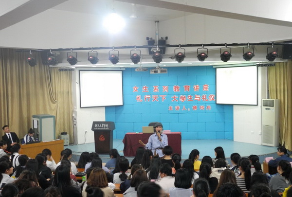 4月17日晚,技师学院(温州校区)在一号教学楼一楼阶梯教室举办了以“礼行天下 大学生与礼仪”为主题的讲座,此次讲座特邀上海玲丹文化传播有限公司董事长兼创办人,浙江新仕女学院院长傅玲丹老师主讲,技师学院(温州校区)全体女生到场聆听。