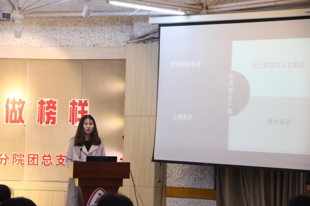 接着,团总支学生会干部代表张丹、班级学生干部代表颜益民分别结合自身工作经历作表率发言。