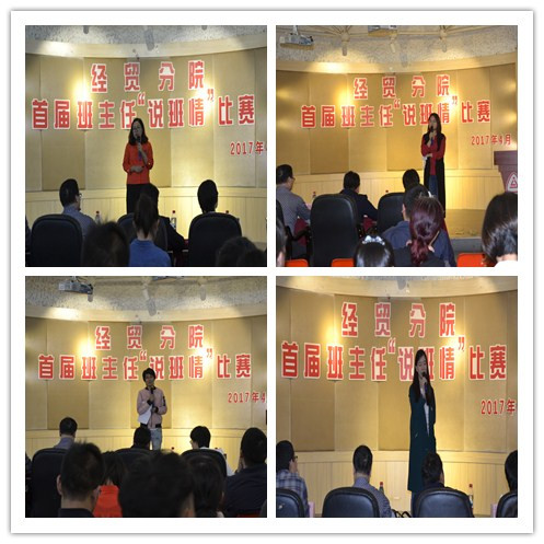 为了进一步落实全国、全省高校思政工作会议精神,加强班主任队伍建设,提高班主任队伍的整体素质,搭建一个相互交流、取长补短的平台,4月26日下午,经贸分院在一号楼多功能厅举行首届班主任“说班情”比赛,经贸分院全体辅导员、班主任和相关学生代表观看了比赛。