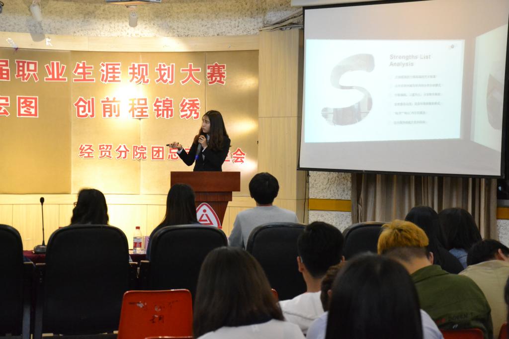2017年4月26日晚6:30,经贸分院在多功能厅举行了第九届职业生涯规划决赛,此次大赛邀请了经贸分院党总支书记张勰老师、团总支书记高莎老师、辅导员向政老师、电子商务教研室主任成荣芬老师、电子商务专业魏振峰老师以及学生会主席团和上届大赛代表担任决赛评委。