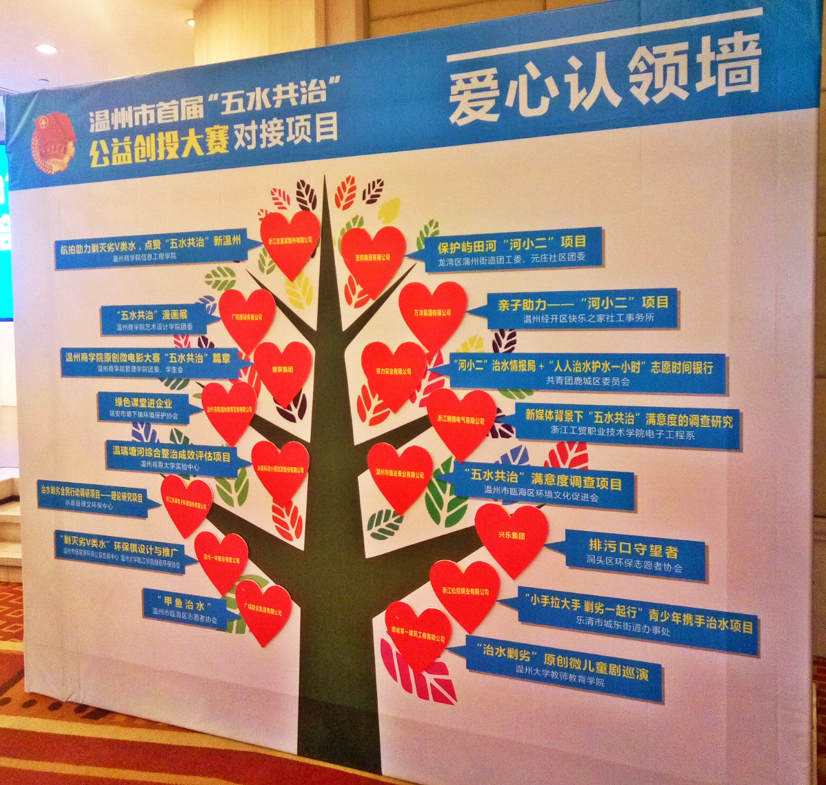 5月2日下午,由共青团温州市委、温州市治水办、温州市志愿者协会、温州市青年企业家协会共同主办的温州市首届“五水共治”公益创投项目对接会在市人民大会堂四楼新闻发布厅举行。团市委副书记王伽伽、市治水办副主任钟建平等领导、相关负责人、青年企业家和高校师生共200多人参与活动。