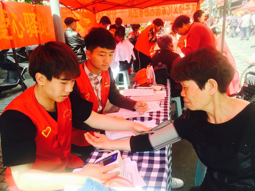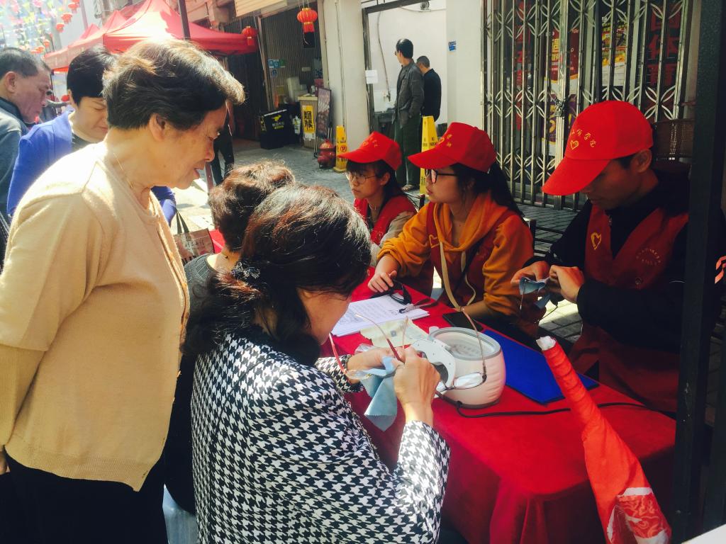 在鹿城区庆年坊文化礼堂,我院“新青年下乡”服务团正在当地开展“辨别生活用水——五水共治,健康用水”服务活动、“物尽其用,‘换’醒低碳”兑换绿植服务、“跟我学唱歌,剿灭劣Ⅴ类”歌曲教学等便民服务。活动中,胡剑谨部长一行认真听取现场青年志愿者对项目的讲解,并一同慰问各个服务点并询问了服务队员的专业情况、活动时间、活动内容、个人收获等。胡部长赞扬了我院志愿者的工作态度,并对我院“新青年下乡”服务活动极具特色的 “集中活动+常态服务”模式表示高度肯定。