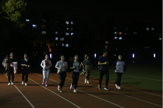 继前期开启的荧光挑战赛之个人挑战赛后,又解锁了一项新技能---团体挑战赛。开启当晚,学社联夜跑团在学生干部们的带领下,强势开跑,最终以78公里的成绩完成第一棒。随后校学社联将接力棒传给了院团委及汽机分院学生会,汽机分院学生会在次日就组织好同学到达操场进行参赛,一行人精神抖擞,斗志昂扬,即使跑到后来落起了豆大的雨滴,却丝毫没有影响他们挑战的热情,最终以140.91公里的好成绩完成挑战。挑战的当晚同时也是社团之夜,由吉他社团倾情演出,在演出的同时也会有一些爱好唱歌的同学加入表演,伴着吉他唱着一首首歌曲,无论是过路人或是夜跑者都会停下脚步安静听他们的表演,这为夜跑增添了不少文艺气息。