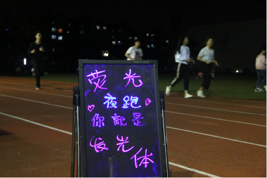 为丰富校园体育文化,积极营造全民健身的良好氛围,促进我院学生身体健康素质进一步得到改善和提升。从4月10日开始,由学生处(团委)主办,校学生社团联合会承办第二届“荧光夜跑”活动在操场举行。