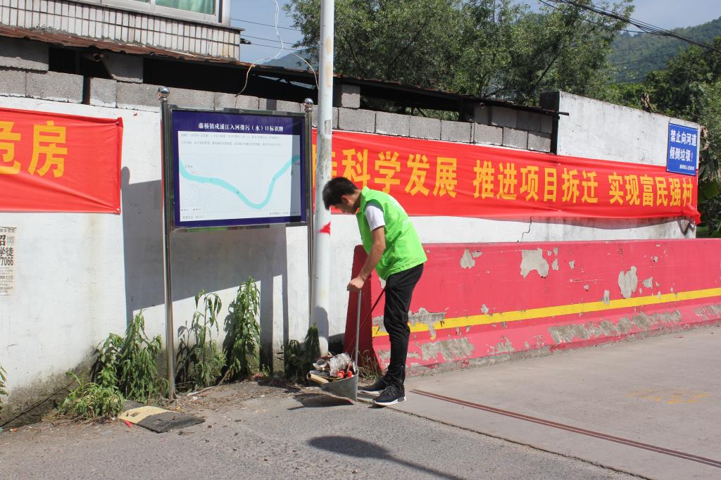 针对河边沿岸的道路清扫,志愿者们对村内公共道路进行了清理,垃圾分类,落叶等可分解垃圾扫入路旁泥土中当做化肥,塑料等不可分解的白色垃圾集中放入公共垃圾桶中。