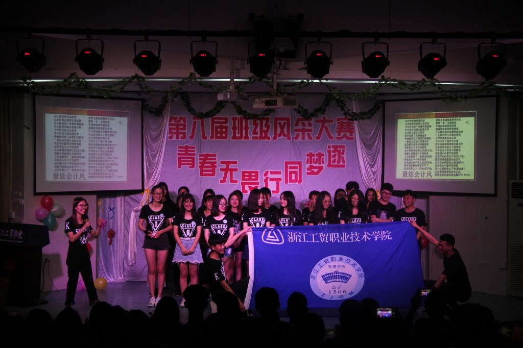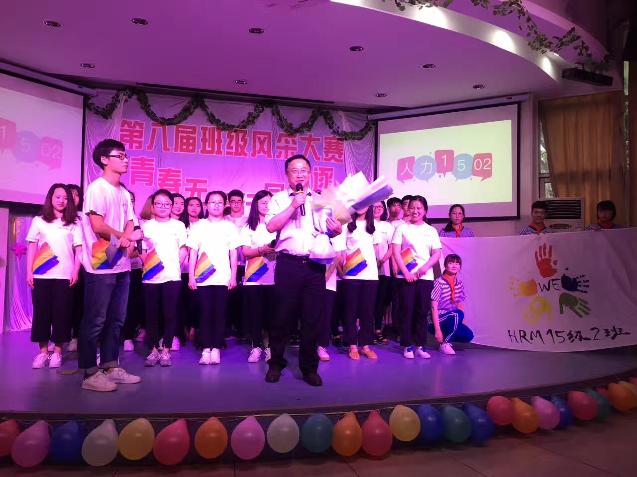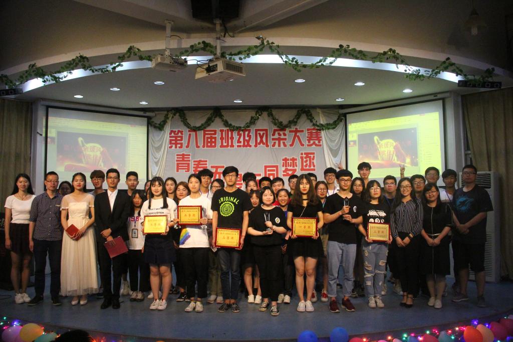 本次比赛分两场进行,共有19个班级参加。比赛分为“风采之窗”、“百花争艳”和“团体合作游戏”三大环节。“风采之窗”环节中由各班级通过PPT、视频等方式从班级形象设计、成员风采、特色活动以及本班所获得的各项荣誉一一进行展示。“百花争艳”环节中,各参赛班级倾尽全力为观众奉上了一场视觉盛宴,情景剧、歌舞表演、真情告白等形式向现场的观众们展示了各班的才艺,各有千秋、各具特色的表演让我们领略了青春特有的魅力。在“团体合作游戏”环节中,班主任和同学齐上阵,师生间的智慧与默契将全场气氛推向了高潮,轻松幽默的“你比我猜”以及充满回忆的“猜歌词”,仿佛依然历历在目,让人意犹未尽。经过两天激烈的角逐,最终电商1602脱颖而出荣获一等奖,金融1502和人力1502获得二等奖,汽修1601、汽销1602和鞋类设计1501获得三等奖,电商1602和人力1502凭借其强大的实力和人气同时获得场内场外双项最佳人气奖。
